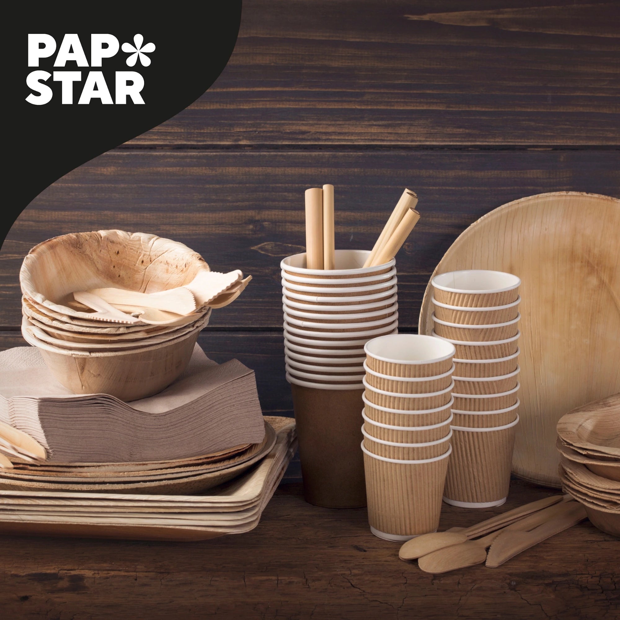 For decades, Papstar has stood for disposable and serving solutions that are both functional and aesthetic. The range extends from napkins and tablecloths to packaging and cutlery, to sustainable products made from recycled materials or renewable resources.