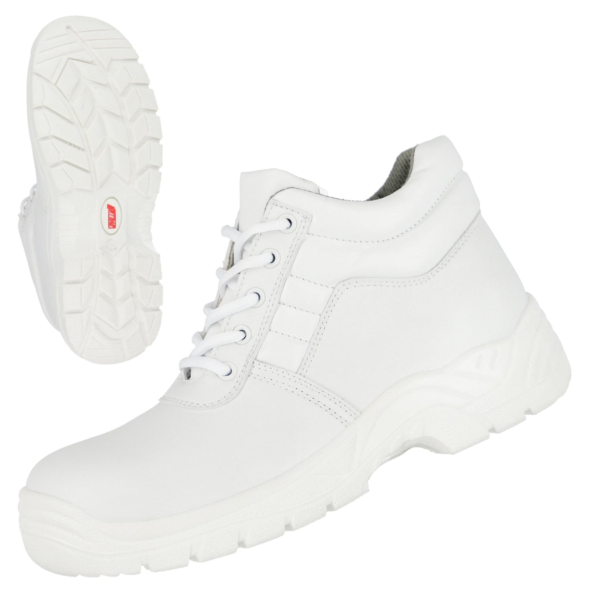 Der NITRAS CLEAN STEP MID ist ein halbhoher S2-Sicherheitsstiefel aus strapazierfähigem Kunstleder in Weiß, der maximalen Schutz und Komfort für den Arbeitsalltag bietet.