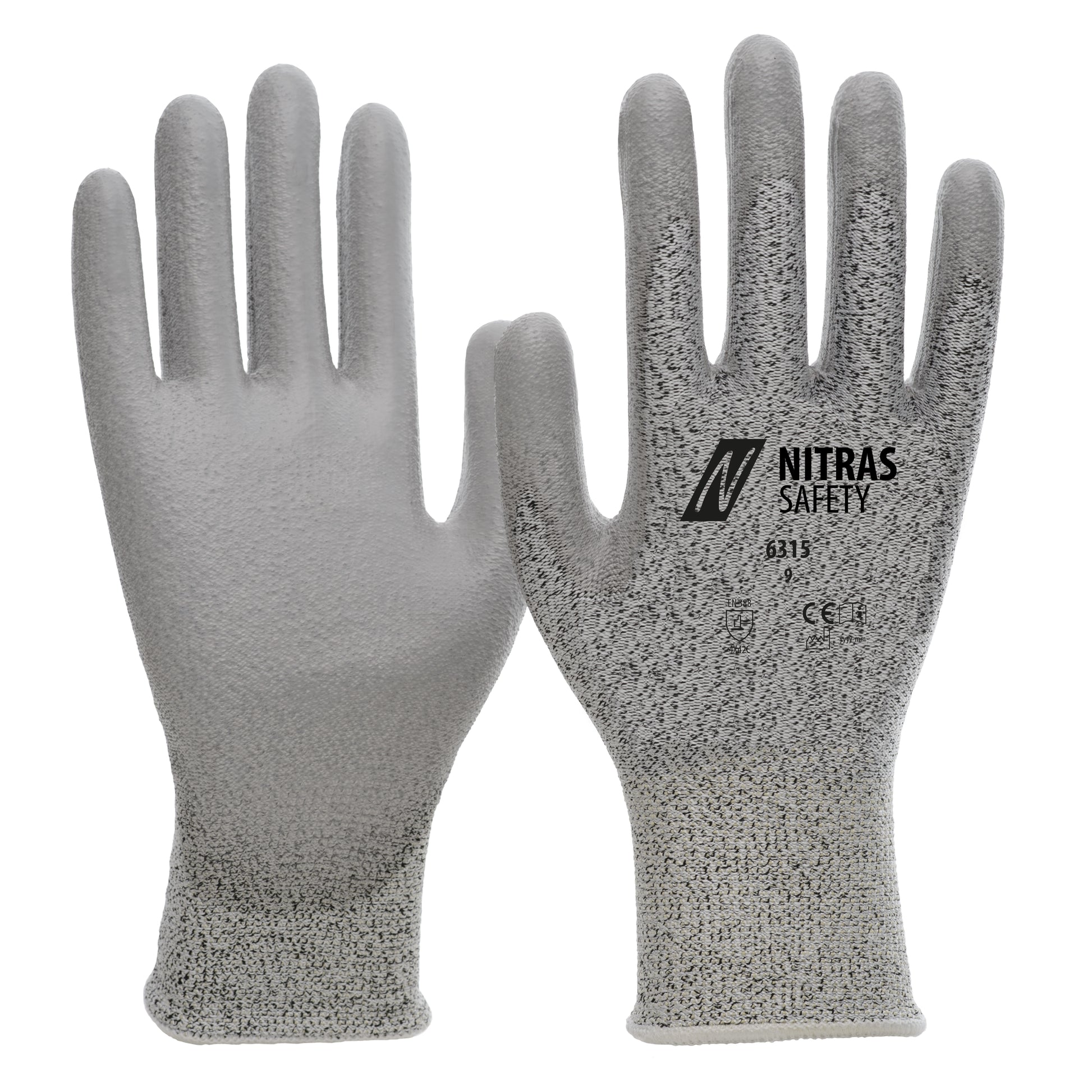Die NITRAS Schnittschutzhandschuhe überzeugen durch ihr hochwertiges Spezialgarn aus HPPE, Polyamid und Elasthan sowie eine widerstandsfähige PU-Beschichtung in Weiß (Farbcode: 1100). Sie sind teilbeschichtet auf Innenhand und Fingerkuppen, was für ein ausgezeichnetes Tastempfinden und maximale Feinfühligkeit sorgt. Der elastische Strickbund gewährleistet einen sicheren Sitz und hohen Komfort – ideal für Arbeiten, bei denen Präzision und Schutz gleichermaßen gefragt sind. Dank ihres hohen Schnittschutzes und der PSA-Risikokategorie II sind diese Handschuhe die perfekte Wahl für anspruchsvolle Tätigkeiten, insbesondere im Umgang mit kleinen, scharfkantigen Teilen.