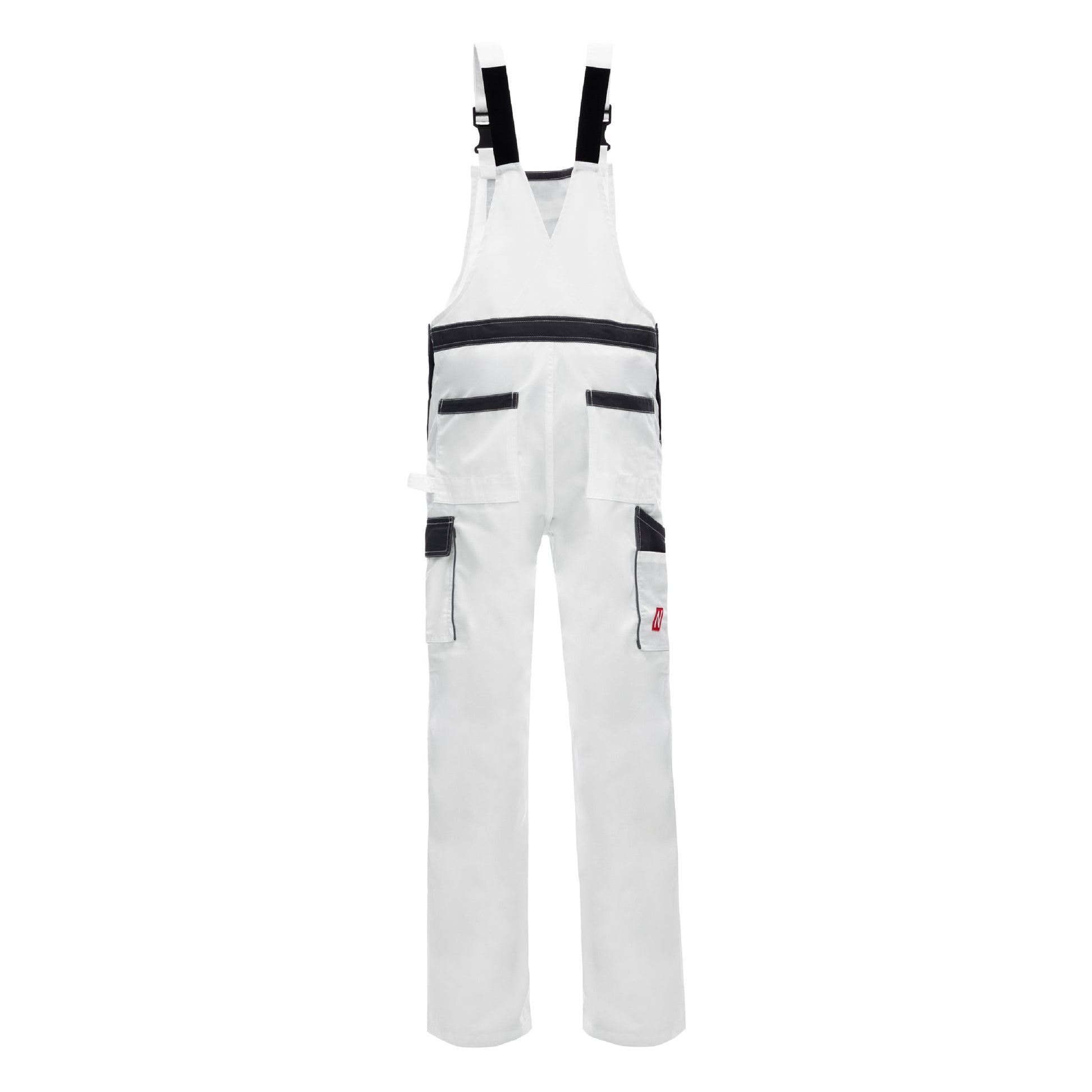 The NITRAS MOTION TEX LIGHT dungarees in white/grey (color code: 1112) impress with their breathable and light material with a weight of 245 g/m². It offers a high level of comfort thanks to the stretchy waistband and is equipped with reinforcements on the leg, knee, back and bib outer pockets. Reflective elements ensure better visibility, while practical details such as a thigh pocket with flap, a ruler pocket with a patch pocket and knee pockets for padding with insertion from below increase functionality. Other features include a hammer loop, sturdy clip fasteners and elastic strap cuffs. These dungarees comply with the OEKO-TEX STANDARD 100® and are available in a regular fit.