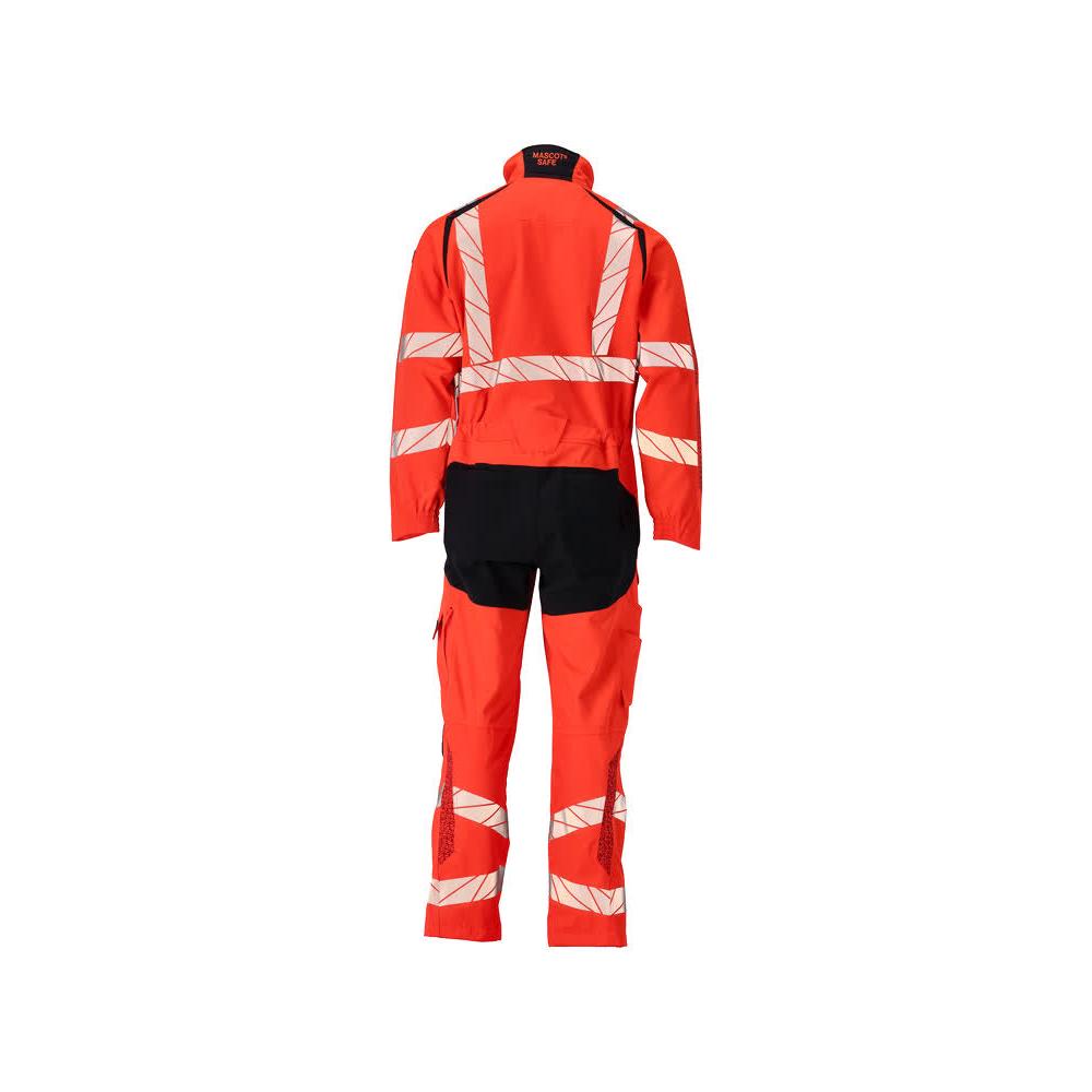 Dieser fluoreszierende Overall kombiniert Leichtigkeit und Ultimate Stretch für optimalen Komfort und Bewegungsfreiheit. Mit schräg verlaufenden Reflexen und Teilen aus Stretchstoff bietet er höchste Sichtbarkeit und Flexibilität. Der Stehkragen und der Zwei-Wege-Reißverschluss mit Wetterschutzleiste und Druckknöpfen sorgen für zusätzlichen Schutz und Komfort. Praktische Details wie die Brusttasche mit Reißverschluss, ergonomisch geformte Hosenbeine, verstärkte Gesäßtaschen sowie höhenverstellbare Knietaschen aus strapazierfähigem CORDURA® (500 D) machen diesen Overall zum idealen Begleiter in jeder Arbeitsumgebung. Die Schrittlänge lässt sich um 3 cm verlängern, um eine perfekte Passform zu gewährleisten. Zertifizierungen nach OEKO-TEX® STANDARD 100 und EN ISO 20471 - Klasse 3 bestätigen die hohe Qualität und Sicherheit dieses Produkts.